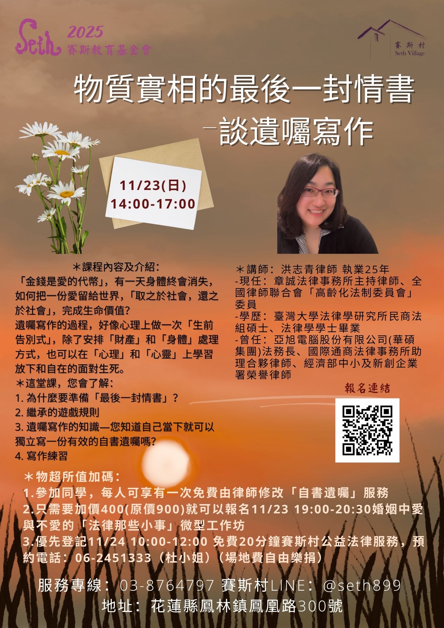 此課程 ,將於 2025-11-24 00:00:00 截止報名,敬請儘速完成報名手續!! 謝謝!